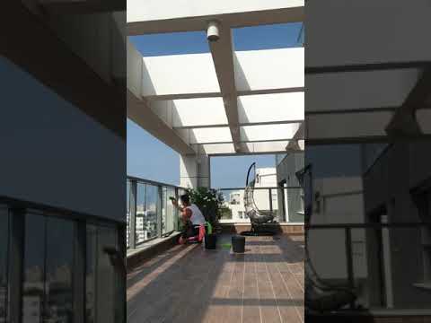 ניקוי חלונות בגובה בשיטת אוסמוזה